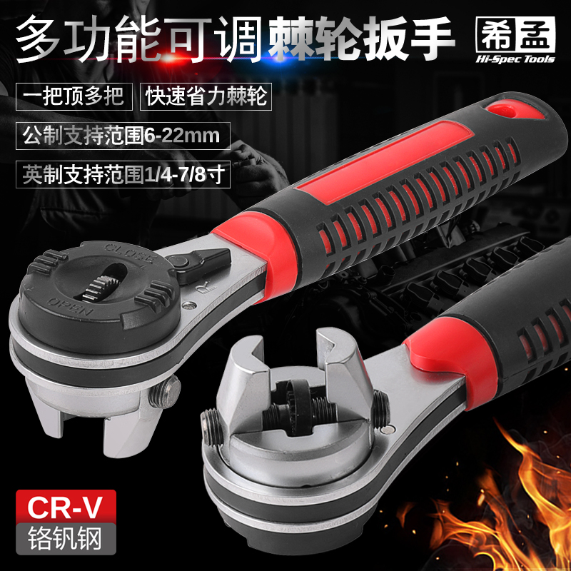 Multifunctional ratchet wrench adjustable two-way quick wrench 6-22mm male plate plum open quick wrench