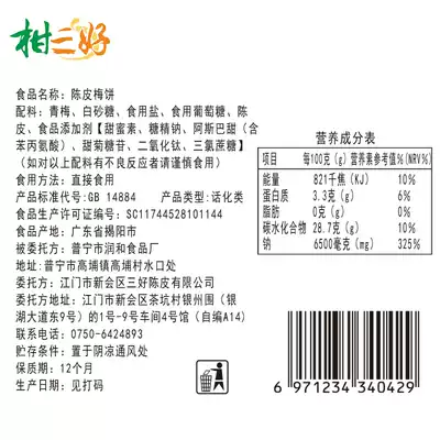 Orange three good Chen Pi plum cake seedless nine-style plum dried meat candied fruit sweet and sour salt Jin green plum strips Japanese snacks canned