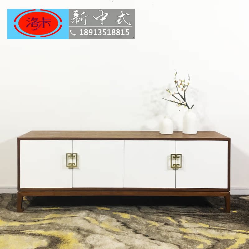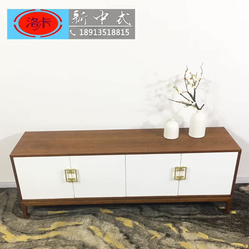 Modern minimal TV cabinet tea set Solid wooden living room bedroom American small family type new Chinese TV cabinet