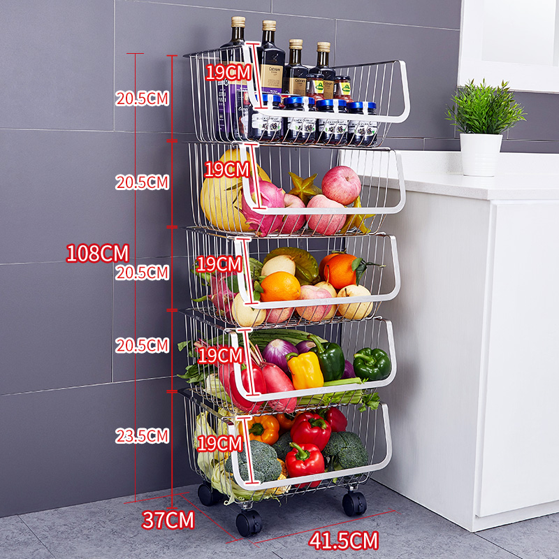 304 stainless steel kitchen vegetable shelving ground floor multilayer vegetable rack Put fruit and vegetable basket containing basket Vegetable Basket