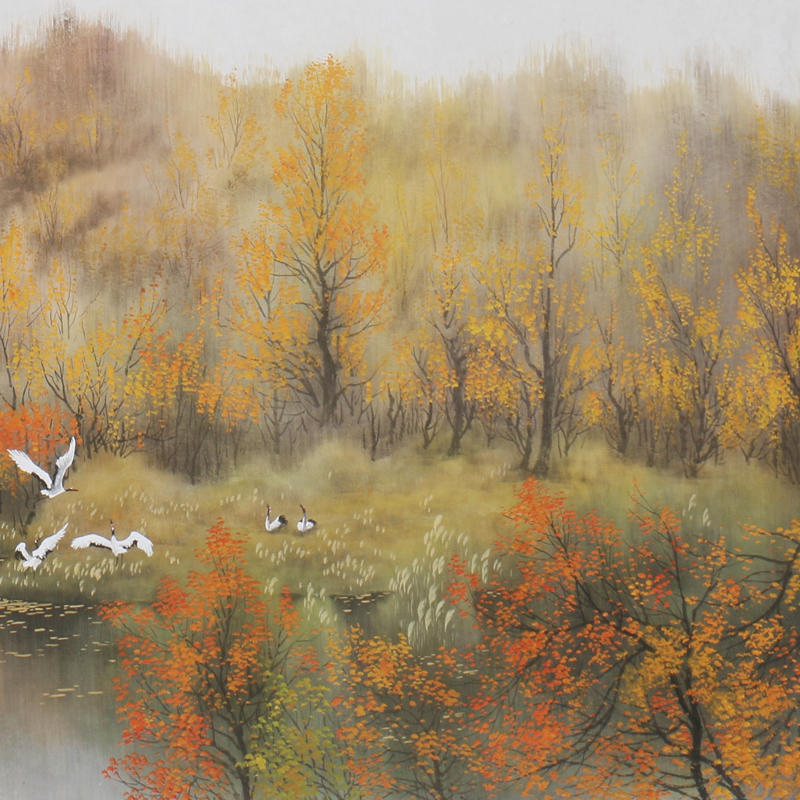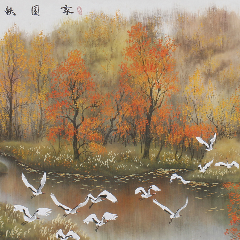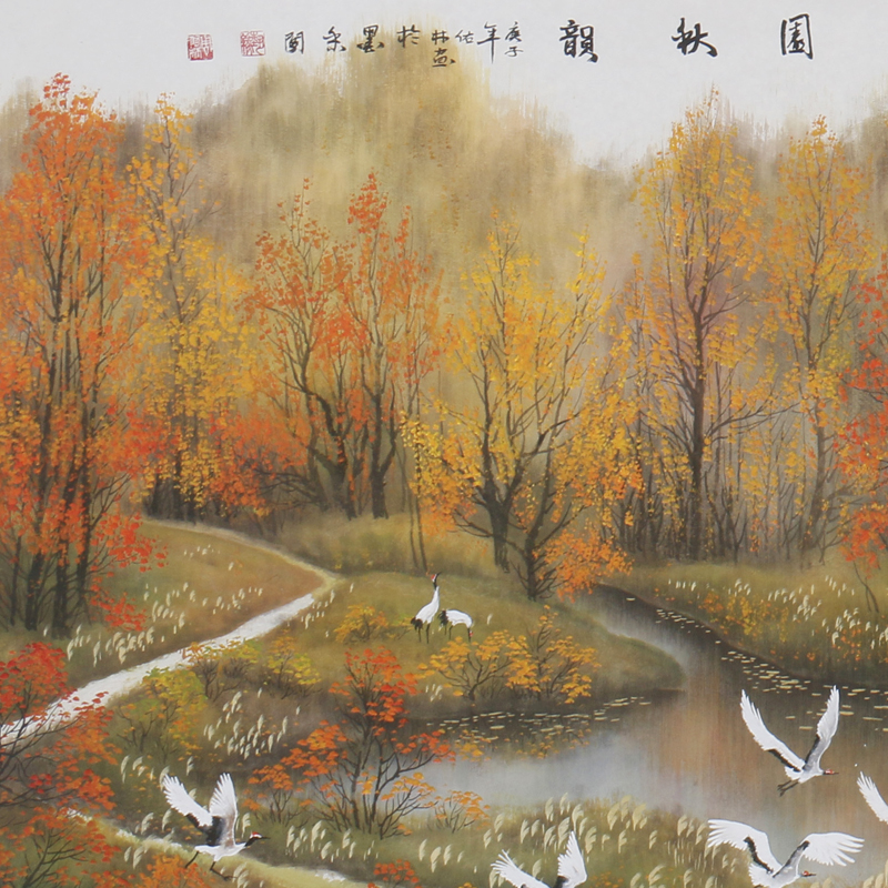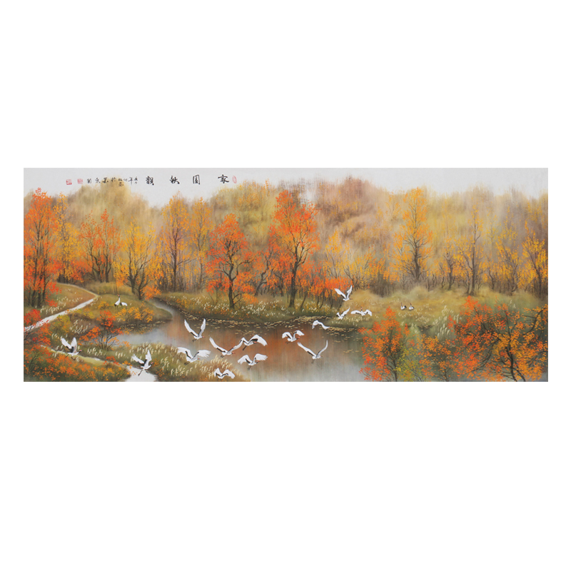 Academician Zhou Youlin Mountain Township Series 2 4 meters "Homeland Autumn Rhyme" boutique hand-painted landscape living room hanging painting