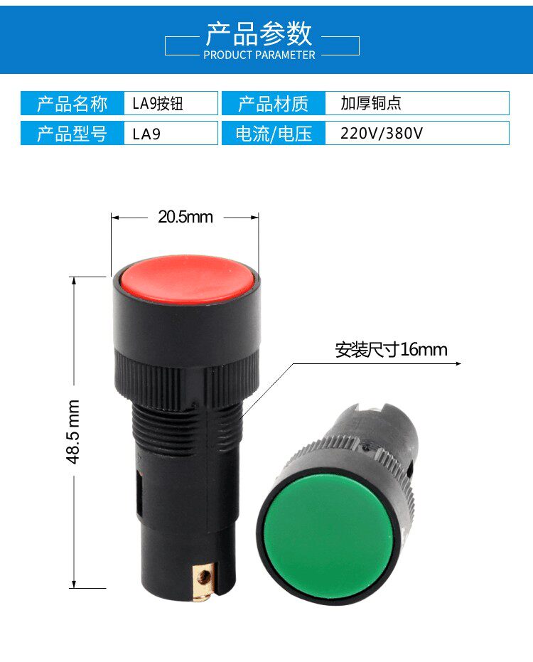 LA9 new button switch machine tool lathe fast walker button switch self-reset button red green 16mm