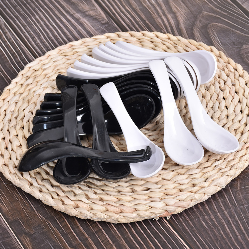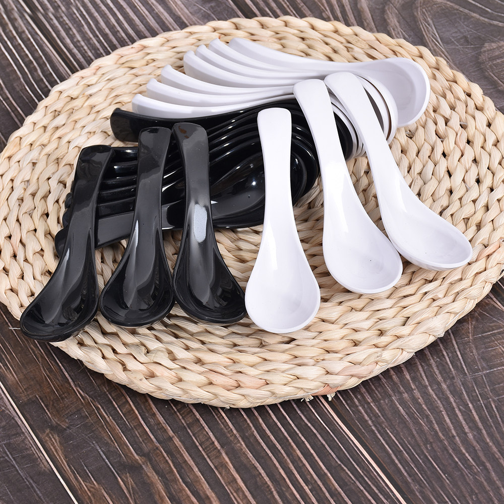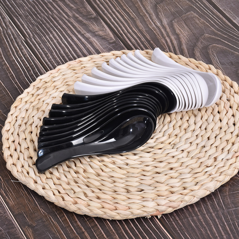 Dense Amines A5 Imitation Porcelain Plastic Soup Spoon Hotel Rice Soup Porridge Spoon Pure White Black Small Spoon Commercial