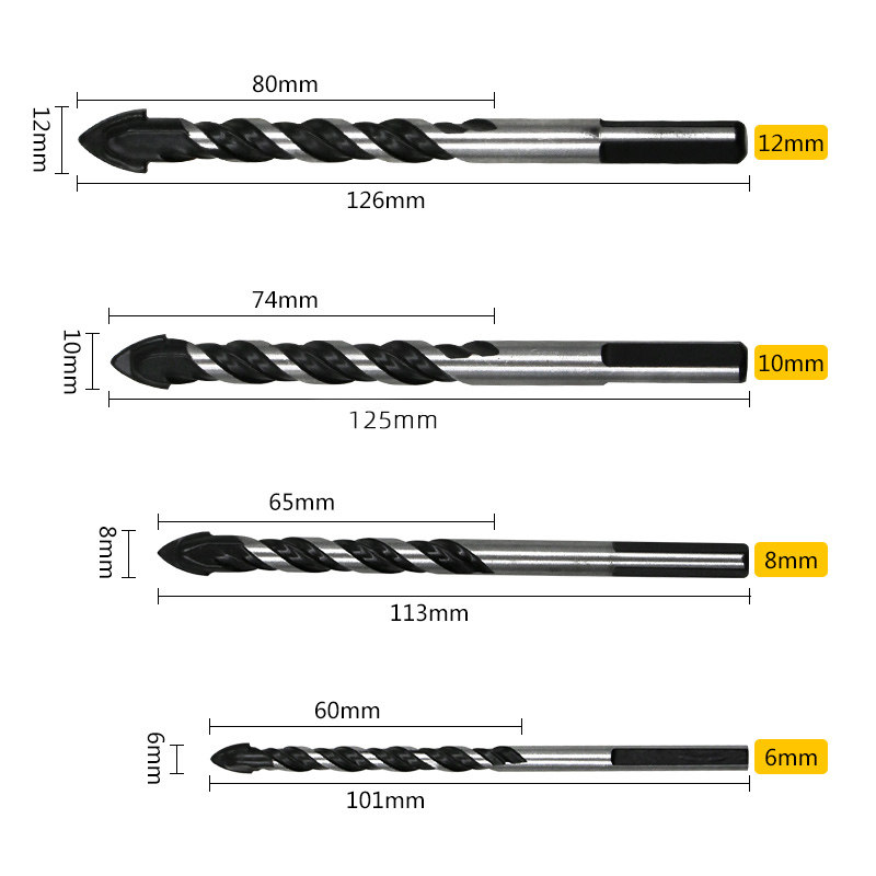 Hard alloy triangular drill tile glass mixed earth ceramic tungsten steel drill hole drilling machine tile perforated drill