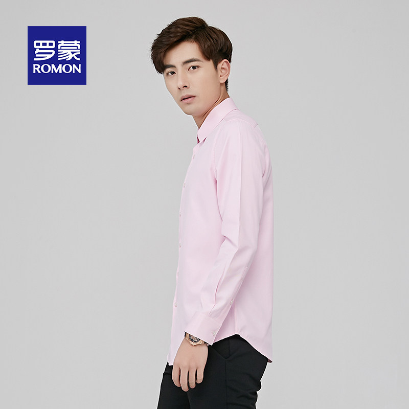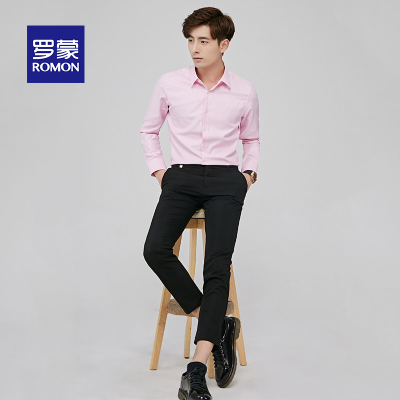 Romon Romon's new pink groom shirt male wedding long sleeve handsome wedding suit men's white shirt