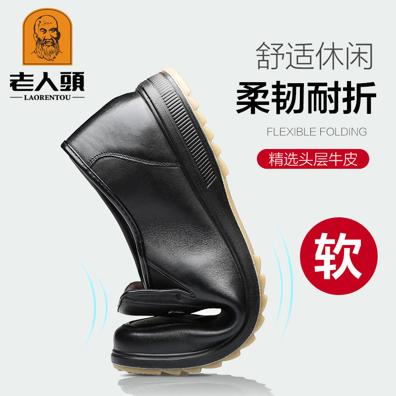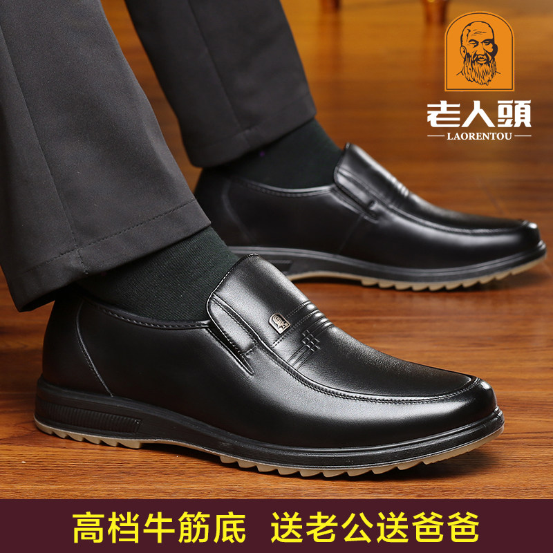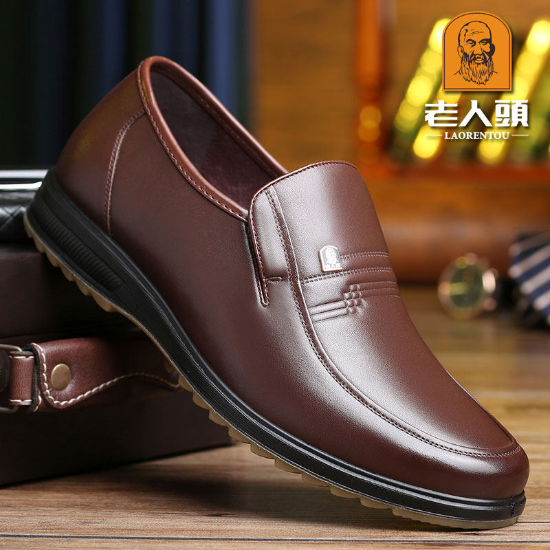Old man's head men's shoes summer leather business casual shoes men's breathable non-slip beef tendon bottom middle-aged dad shoes