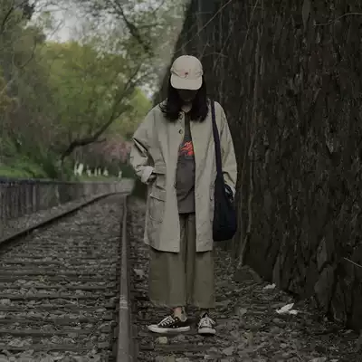 Crisis youth long-term trench coat men's autumn new Japanese coat retro solid color work lapel casual jacket