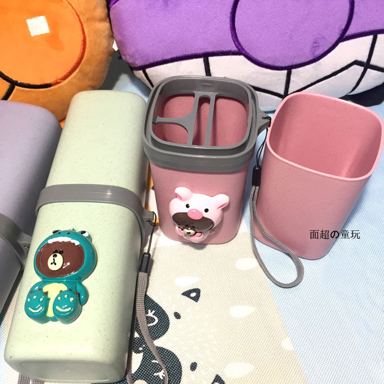 Cartoon Portable Men and Women Travel Mouthwash Cup Travel Toothpaste Toothbrush Storage Box Straw Travel Wash Cup Set