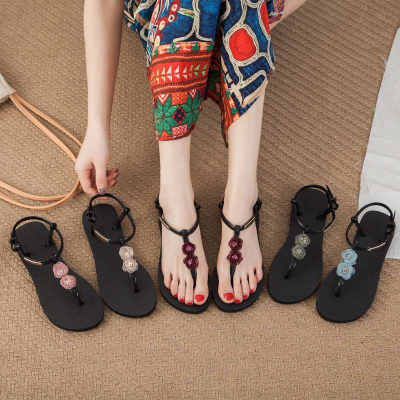 Flat women sweet flowers sandals Women summer seaside vacation Joker sandals women 2021 New Flip-flops