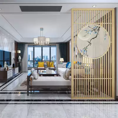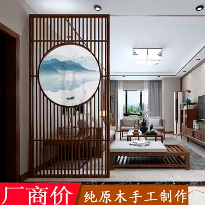 Screen partition New Chinese living room modern minimalist partition wall store entrance camphor pine walnut solid wood seat screen