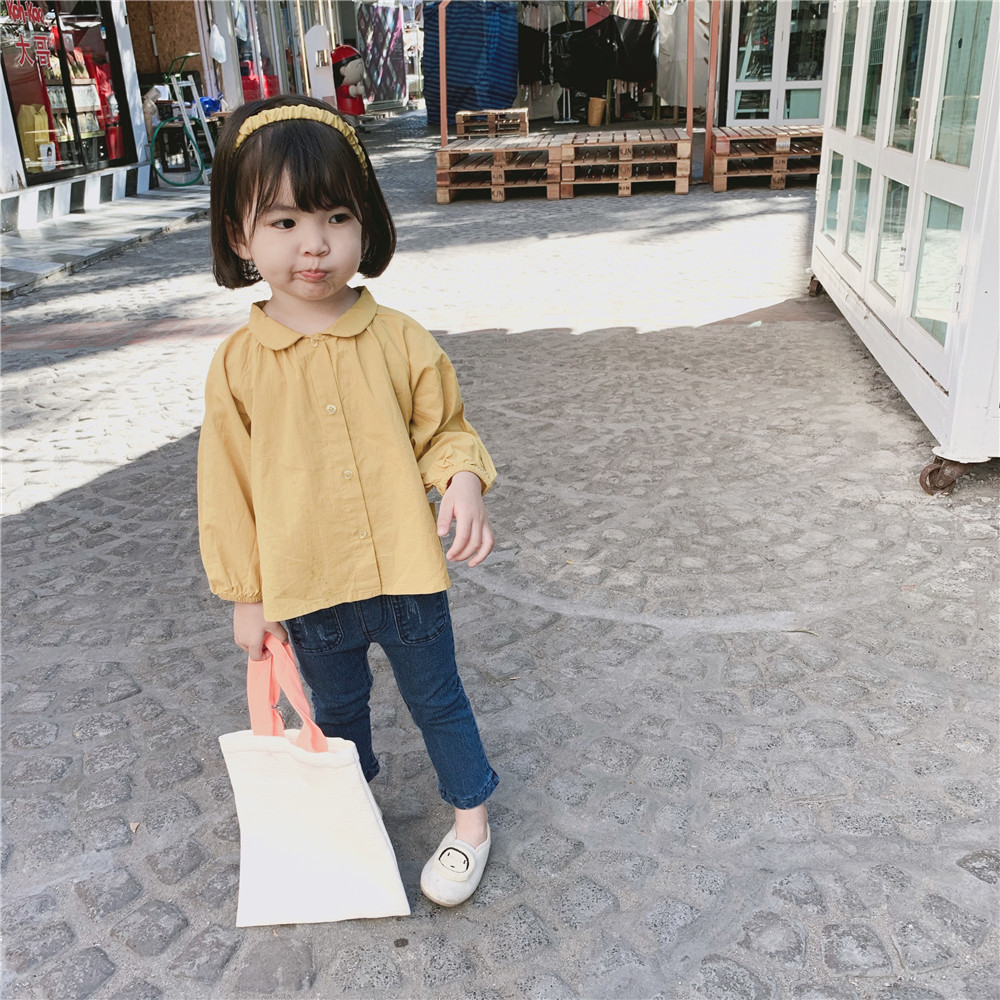Orange juice home children's clothing girls Korean shirts Western style 2010 autumn new baby solid color long-sleeved shirts baby shirts