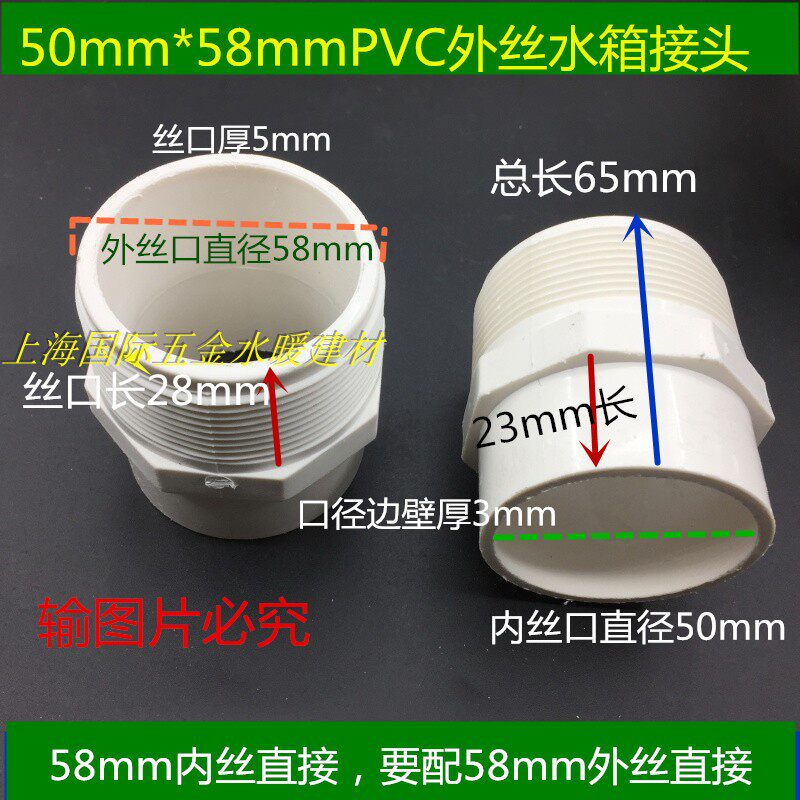 58 internal wire direct 50 * 58mm Outer wire Direct PVC50mm pool joint Lower sink joint to water pipe fittings