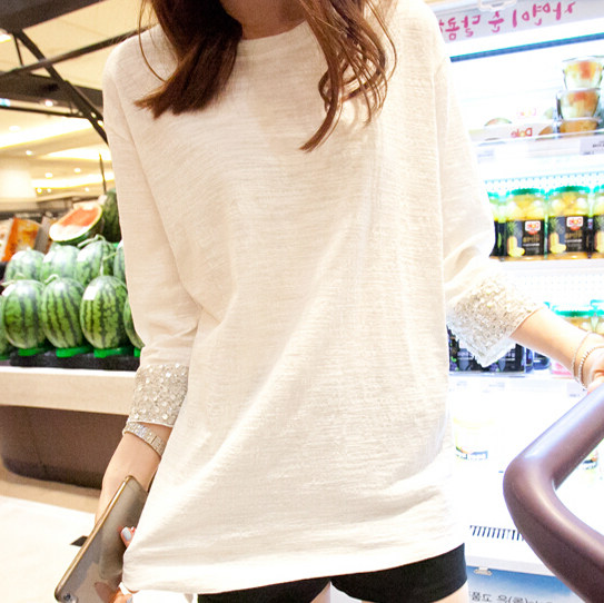Pregnant women Spring top Korean version of the loose plus T-SHIRT in long qi fen xiu summer slub cotton long sleeve nei da yi