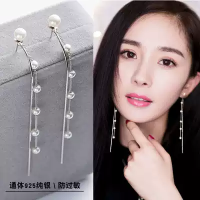 Pearl earrings female 925 sterling silver long version temperament Net Red personality Super fairy fringe all ear needle 2020 New Tide