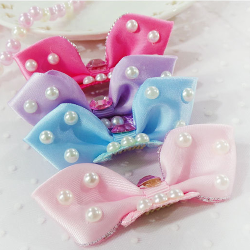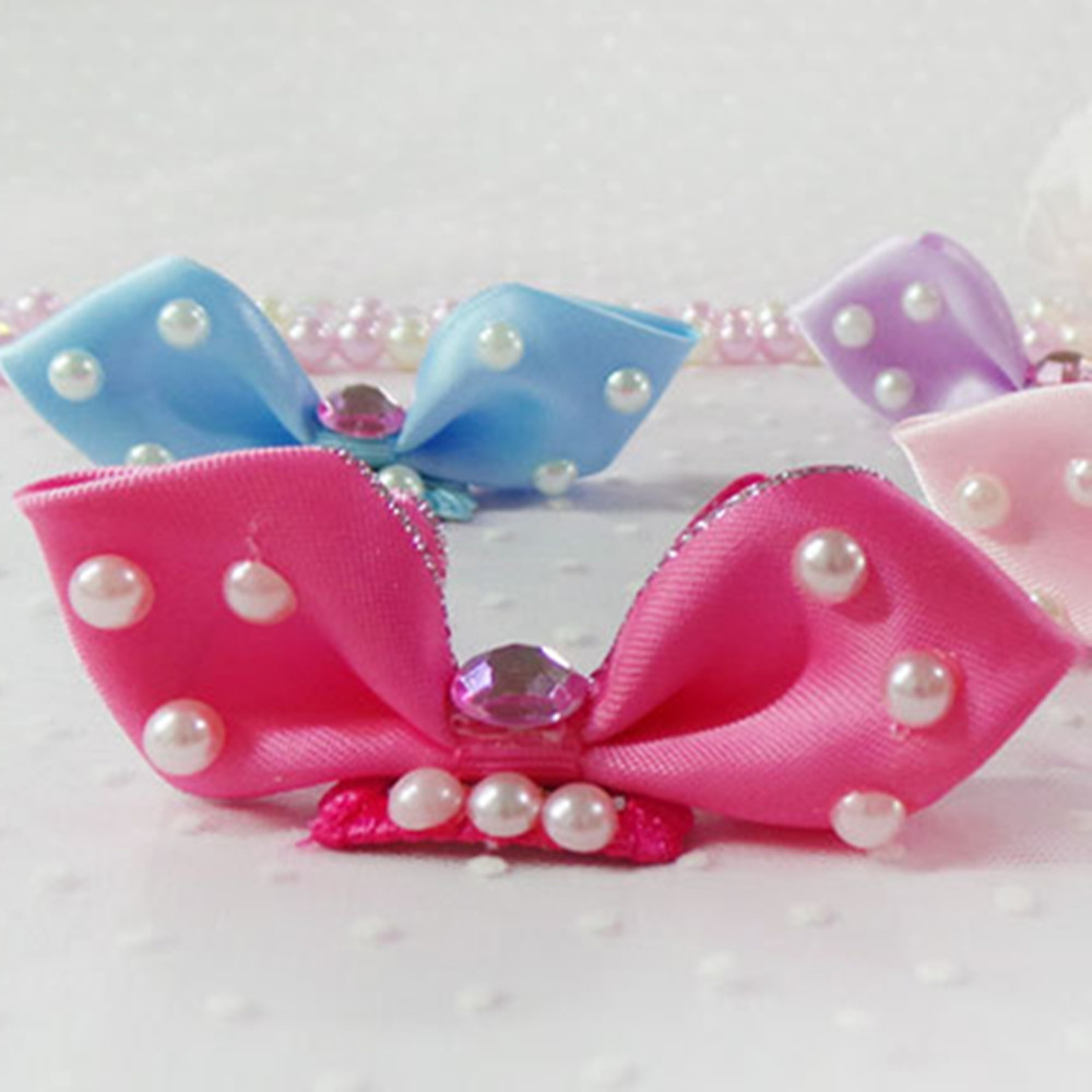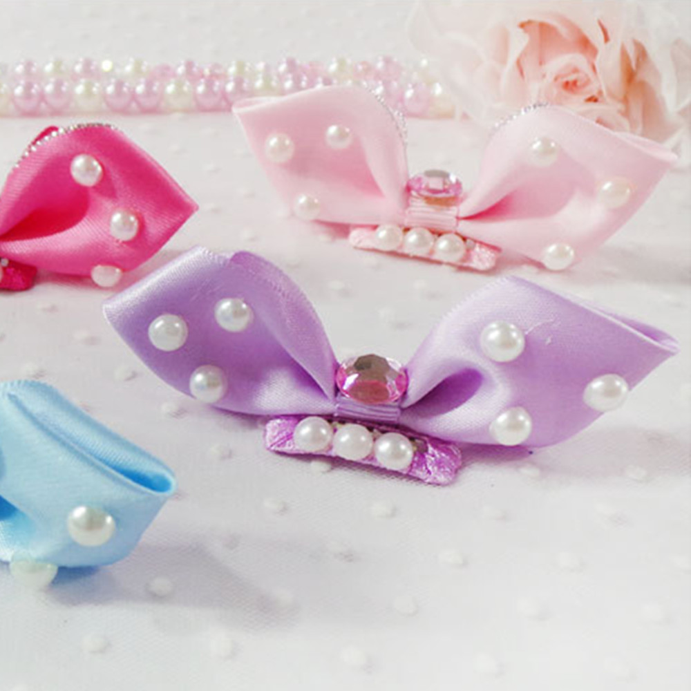 Pure handmade big bow pearl pet dog hair accessories small cute pet hair clip broken hair clip safety clip