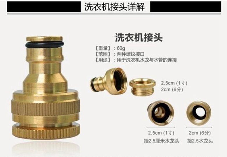Washing machine faucet all-copper nipple connector standard connection 4 points 6 points garden watering flower car wash tool inner thread