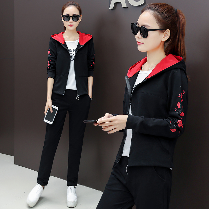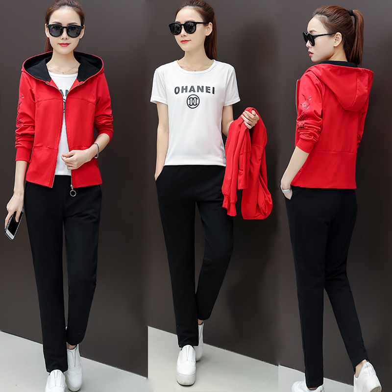 Casual Sportswear Suit Women 2021 Spring Dress New Korean Version Fashion Jacket Cardio-hoodie Jersey Girl Three Sets