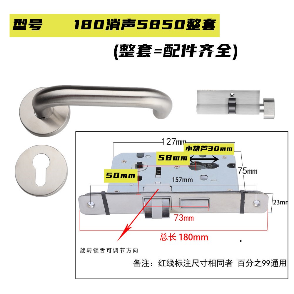Indoor door lock 58 lock body 72 silencer spring 180mm household room bedroom door handle lock lock accessories
