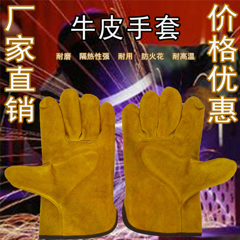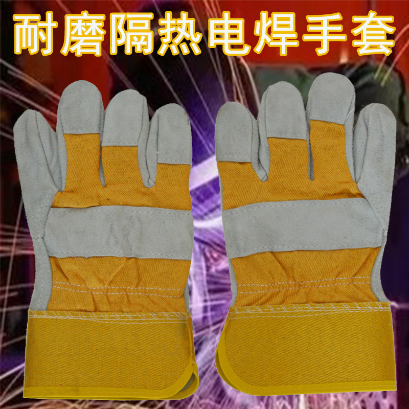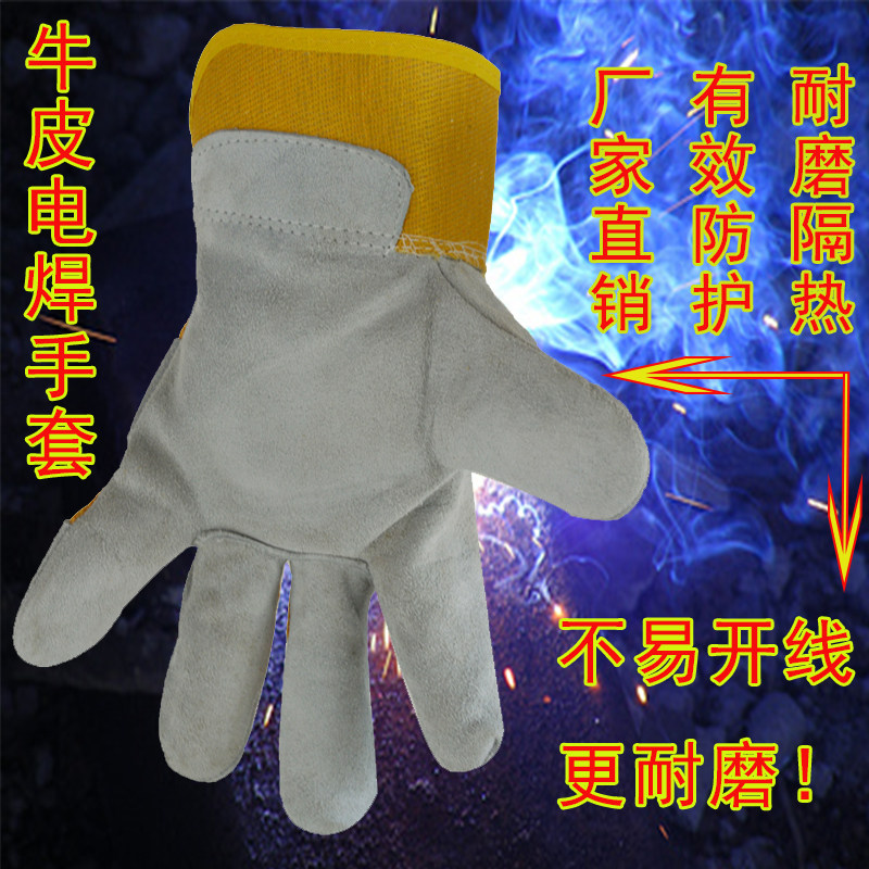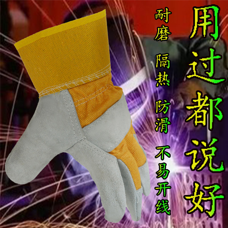 Electric welding work gloves lengthened with protective thickened gloves Short short leather argon arc welding cow leather electric welding protection gloves