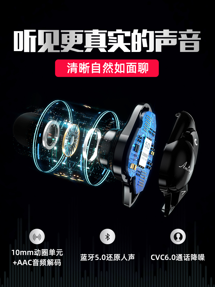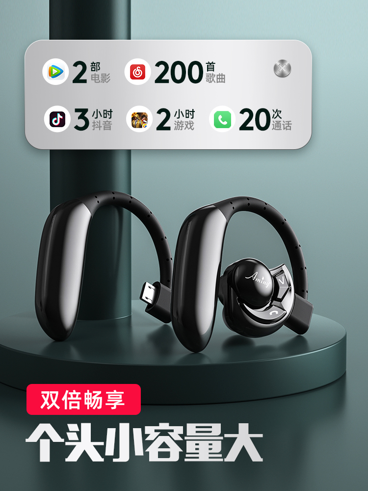 Aminy UFO Bluetooth headset Binaural wireless subwoofer Ear-mounted in-ear sports Waterproof running Super long standby 5 0 driving Single ear in-ear universal type