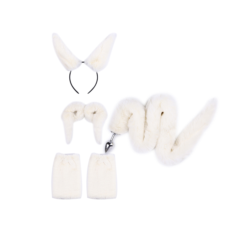 White fox female ear, hands and feet decoration with vibrating anal plug tail white fox female ear, hands and feet decoration without vibration