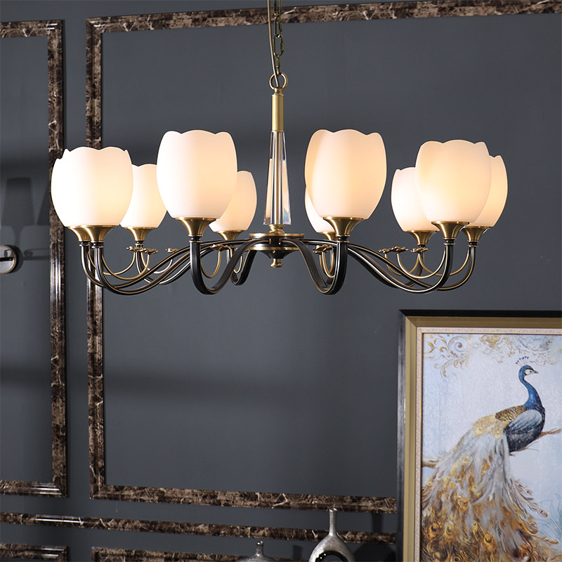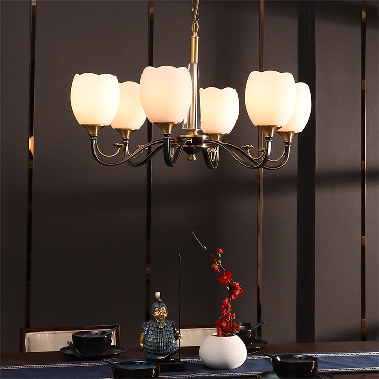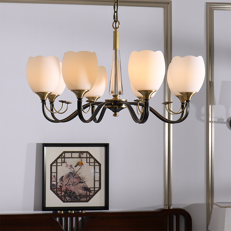 New Chinese all-copper chandelier Living room Modern simple dining room Plum Zen tea room Light luxury bedroom Chinese style lamps