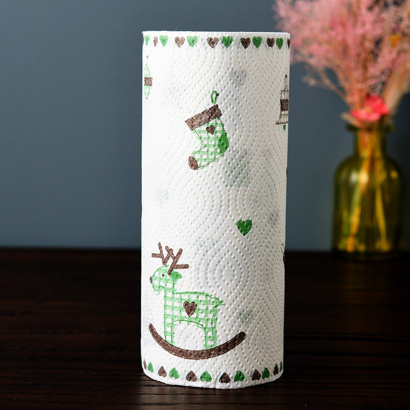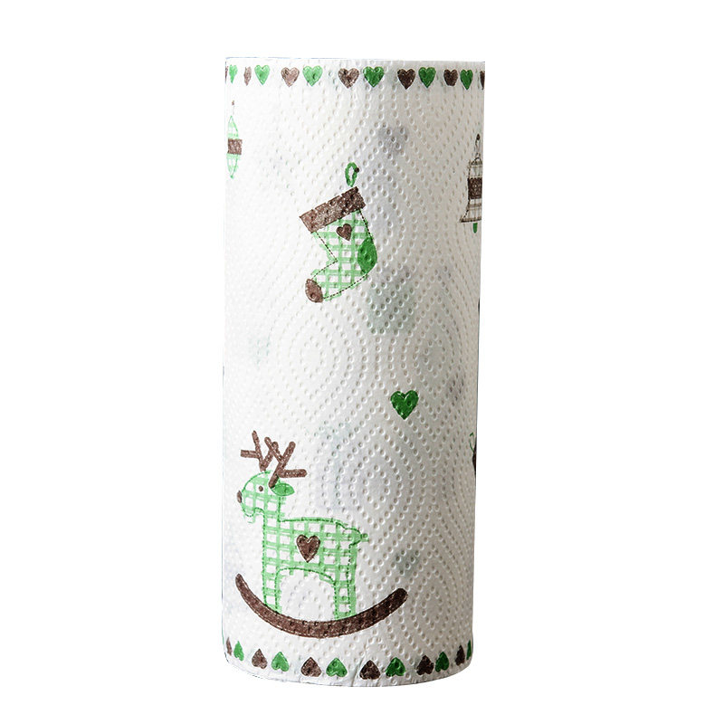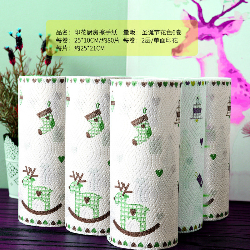 6 rolls of color printed kitchen paper towel Oil-absorbing water-absorbing roll toilet paper Lazy rag paper Kitchen paper towel Disposable paper towel