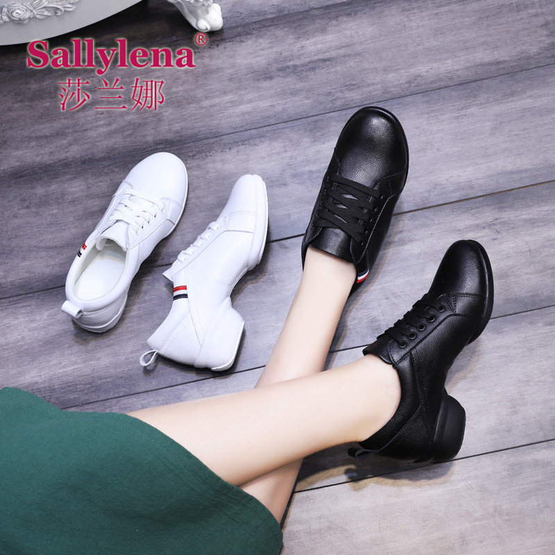 Salana dance shoes women's spring and Autumn new square dance shoes leather mid-heel soft-soled sailor dance shoes