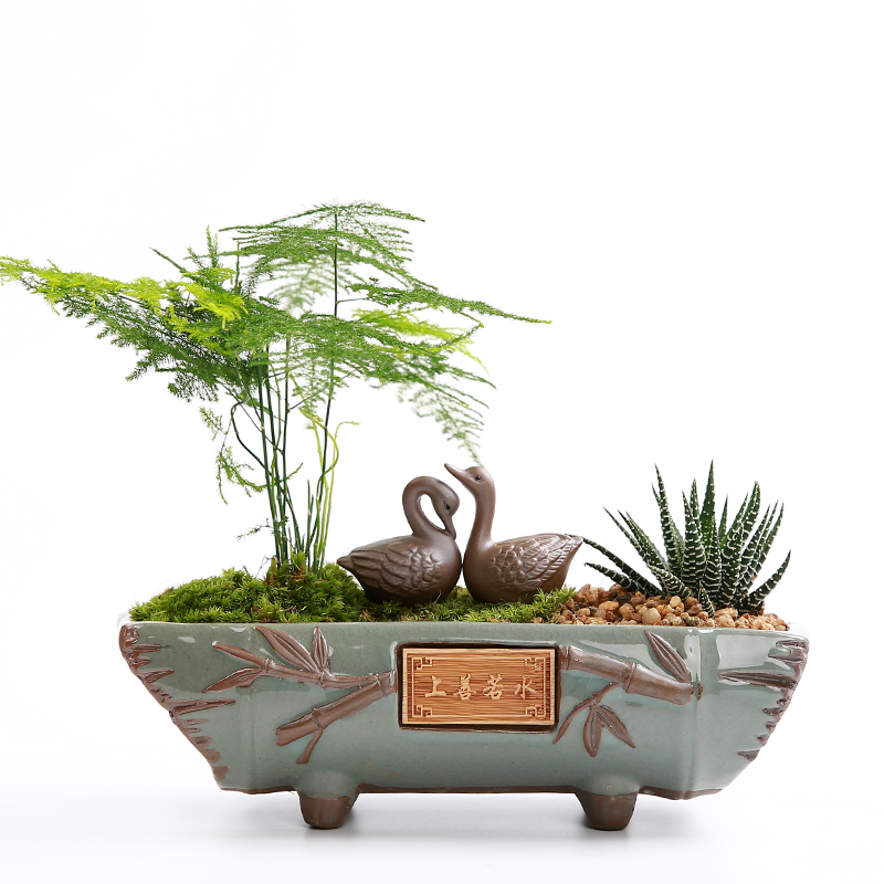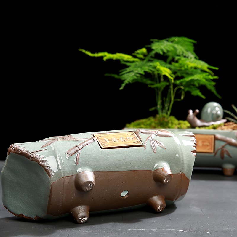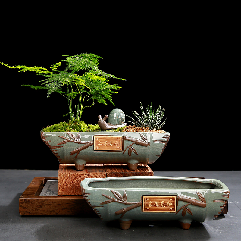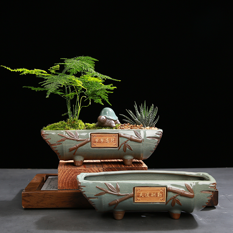 Chinese wind flower potty pot creative indoor desktop green plant pot meat pot, meat pot, rectangular large