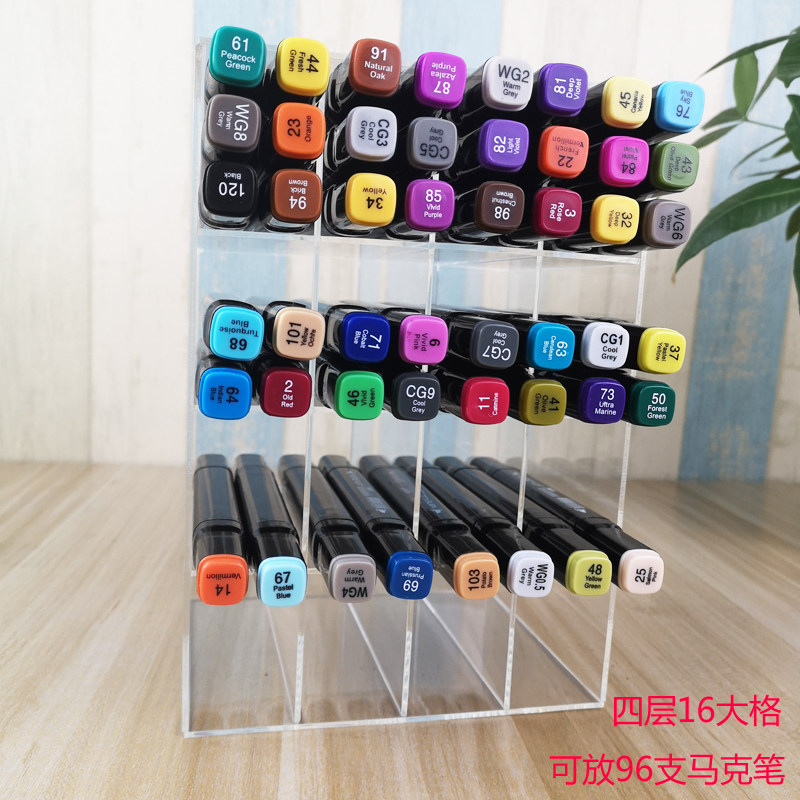 Yiben Acrylic transparent marker pen holder storage grid desktop color pen pen holder Stationery store pen holder display