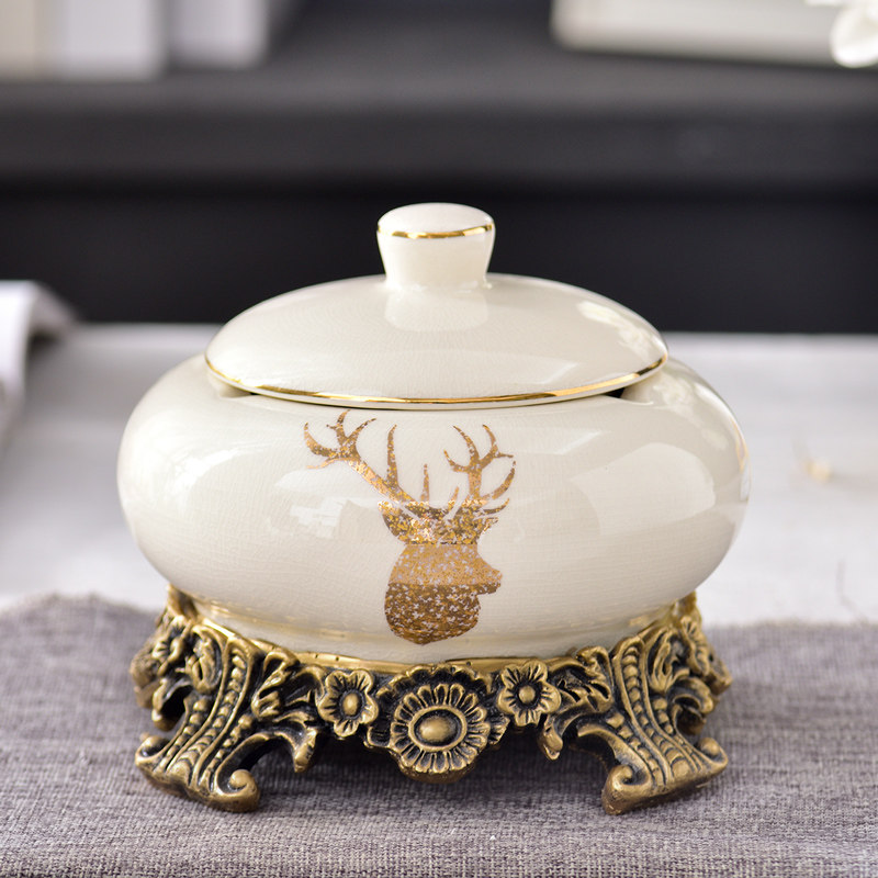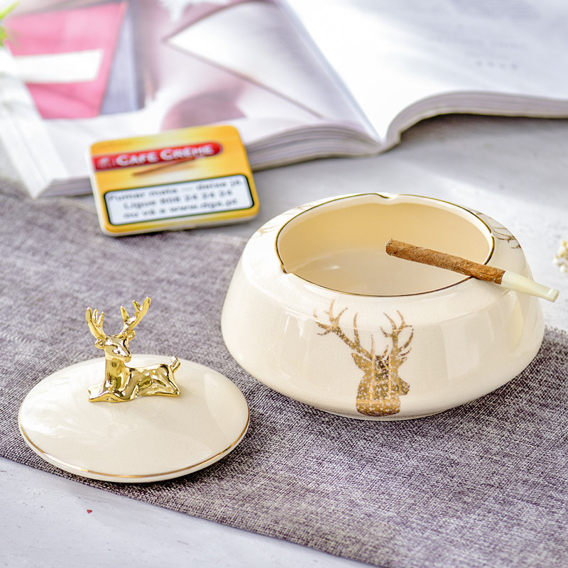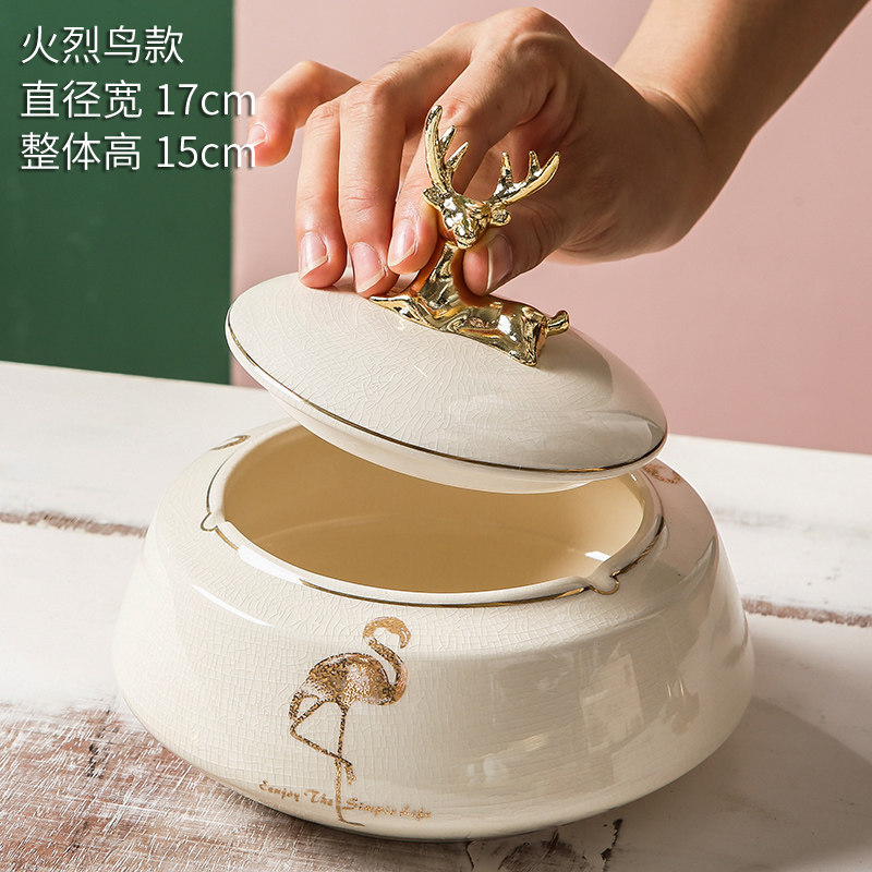 Home with lid ashtray creative personality trend multi-functional European-style living room coffee table decorative ashtray ceramic modern