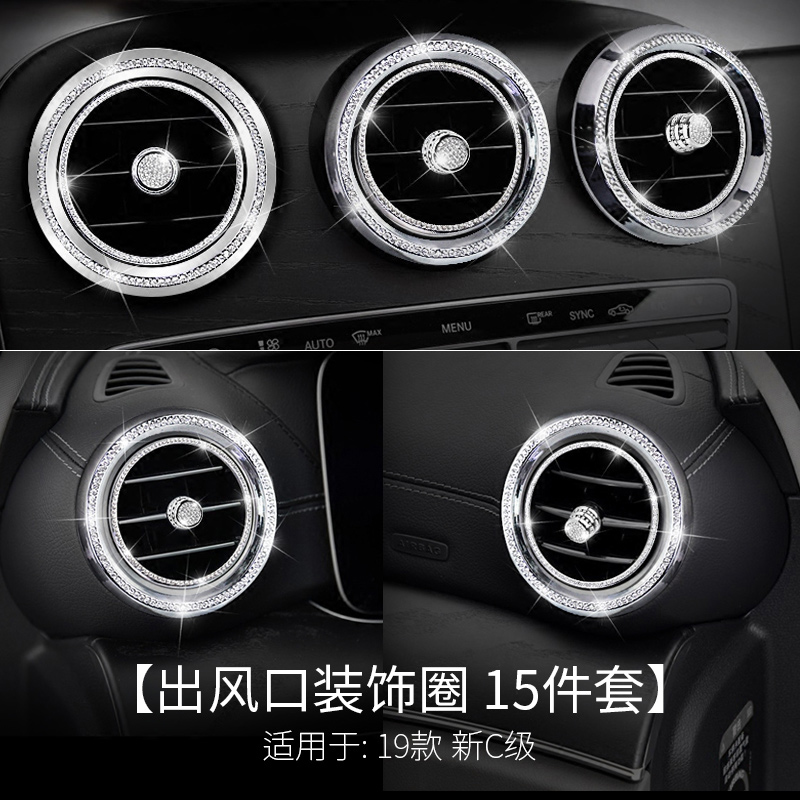 Steering wheel trim patch-Silver key start Decorative Ring-Silver in silver with air conditioning Key sticker-silver Air Outlet Decoration Circle 15 pieces-Silver color Out of wind Exterior Trim Circle 5 Pieces-Silver