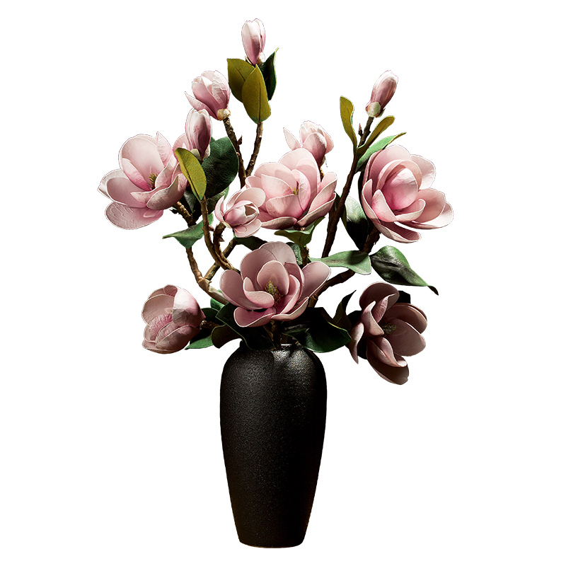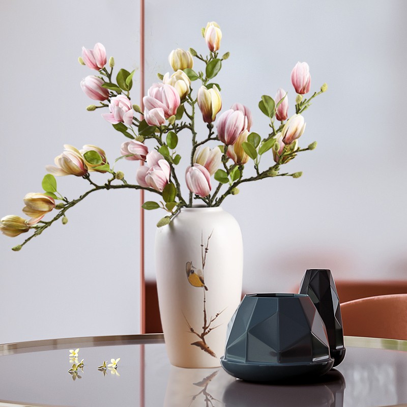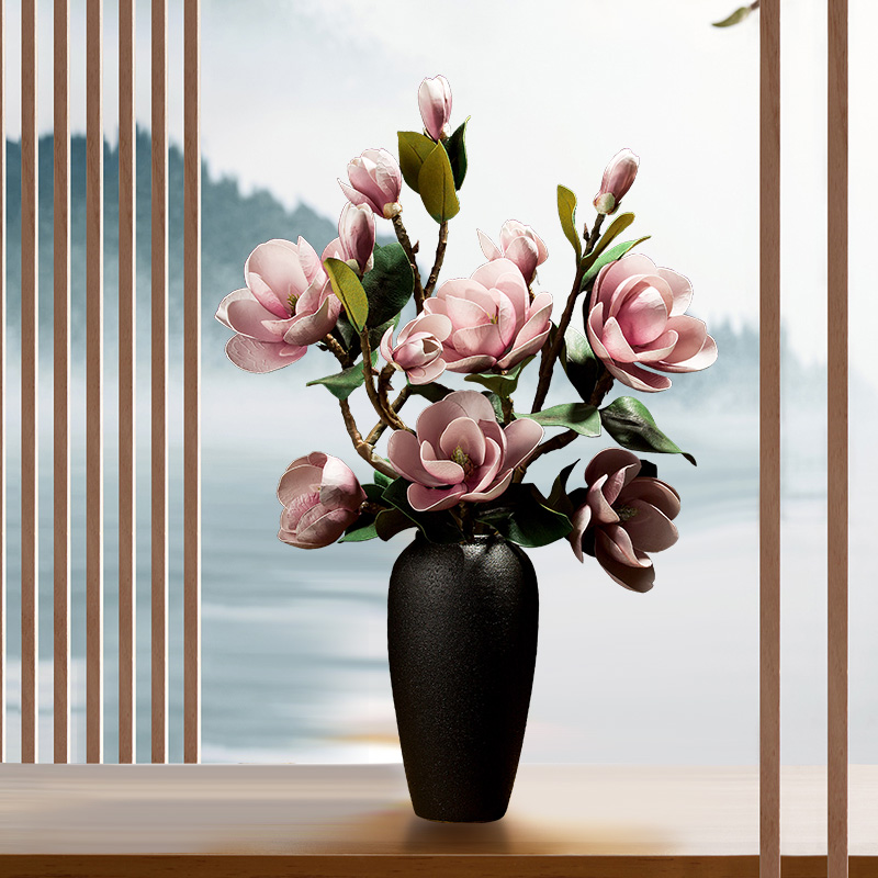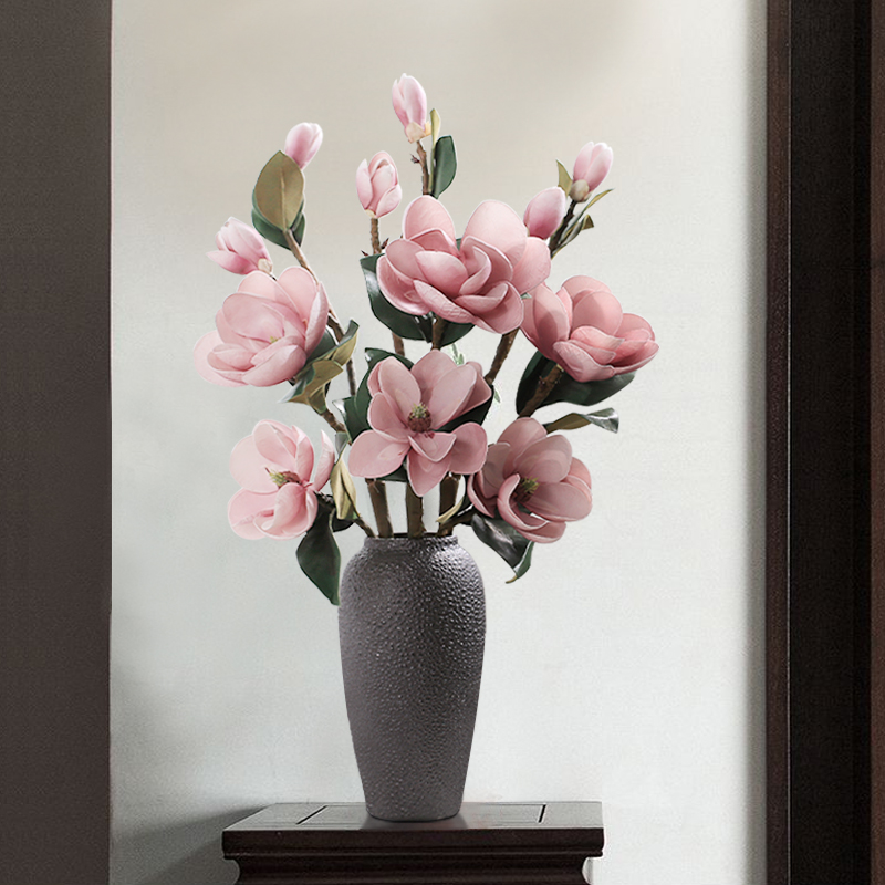 New Chinese magnolia flower simulation bouquet living room decoration floor large bouquet of high-end fake flower decorative ornament vase
