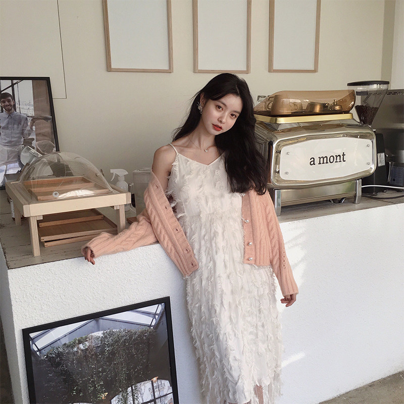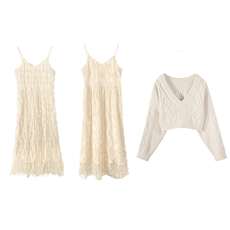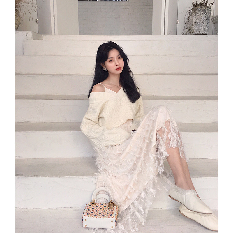 Feather hanging band Skirt Lace Solid Flower V Collar Sweater Hood Feather Hanging Strap Skirt-Lace Solid Flower -V Collar Sweater Hooded Sweater -