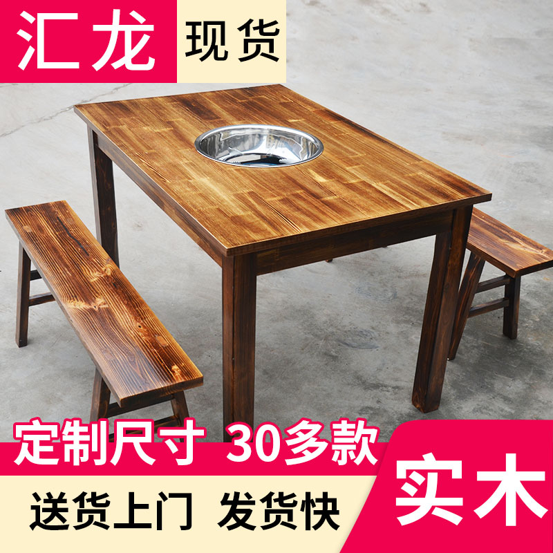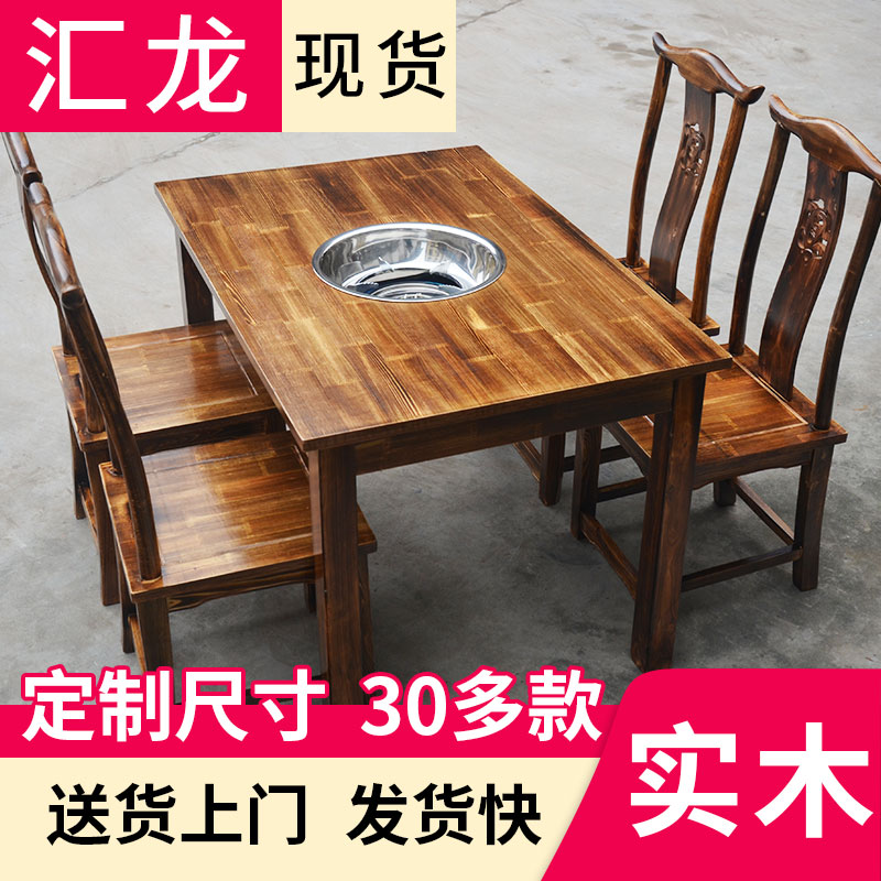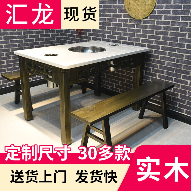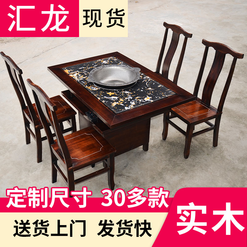 Solid wood hot pot table dining room with smoke-free purifying induction cooker gas cooker integrated hot pot dining table and chairs combined custom