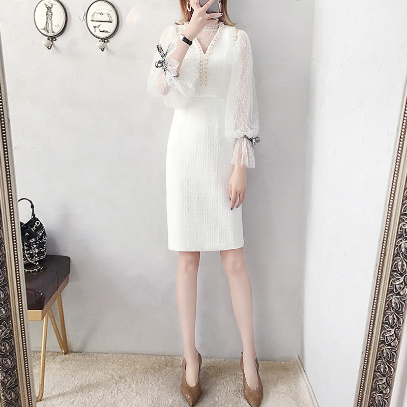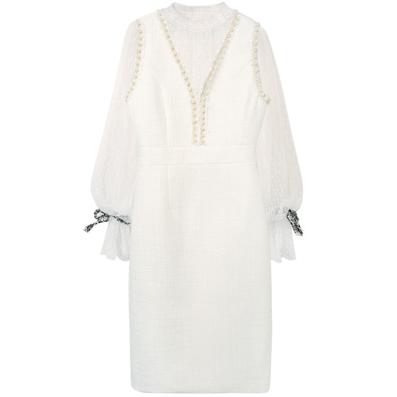 2022 Spring autumn season new small balsamical wind dress suit names Yuanyu Temperament Lady White Dress two sets of foreign