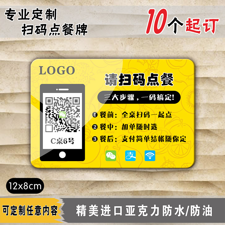 Set to do a two-dimensional code sweep-point dining card table with acrylic table number card sweeping a minesweeter and a slight letdown dish logo ID card ID