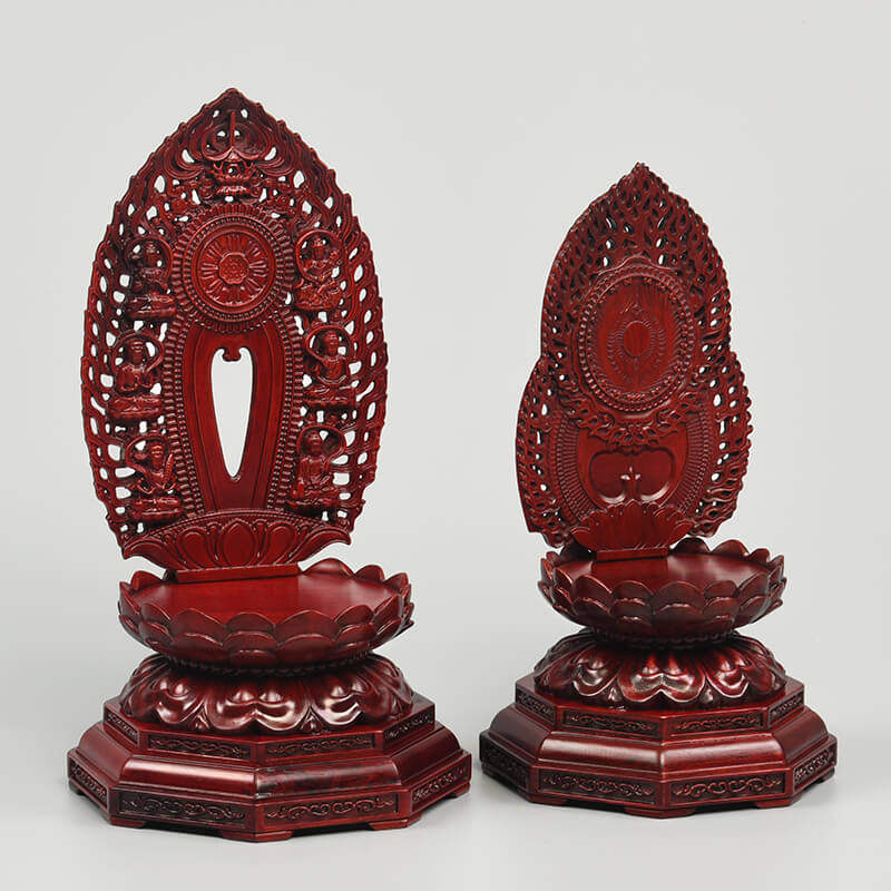 Red wood engraving pendulum piece handicraft Buddha statue lotus base dedicated to Guanyin Bodhisattva backlight solid wood round bottom bay-Taobao