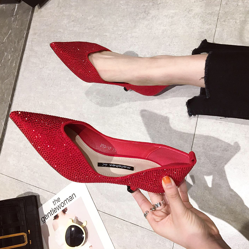 2022 spring new 100 hitch a little fresher red French girl high heels girl fine with pointy mesh red sexy wedding