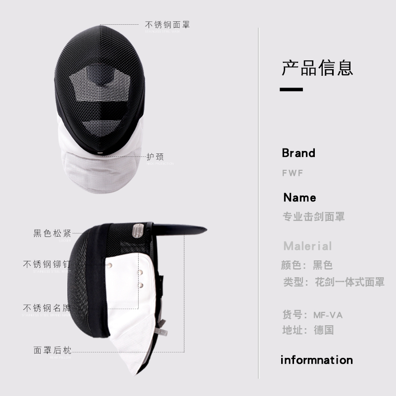FWF Germany import flower sword mask one-piece FIE1600N certified CE fencing head coach safety helmet competition