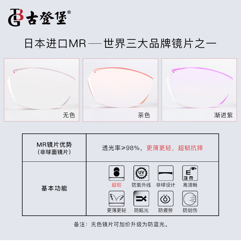 Wine Red Glasses Frame Import MR Colorless Lens Wine Red Glasses Frame Import MR Progressive Tea Lens Glasses Frame Anti-Blue Color lenses