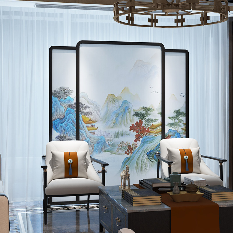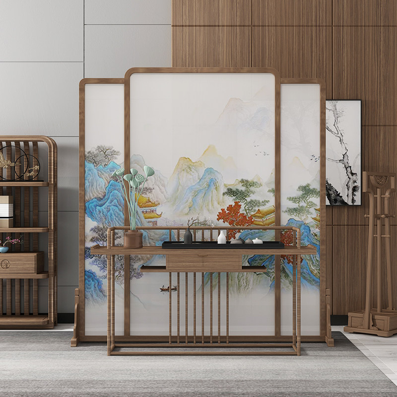 New Chinese simplified solid wood screen Xuanguan Living room Cubicle Seat Screen Book Room Bedroom Hotel Custom Design Hu Peach Wood