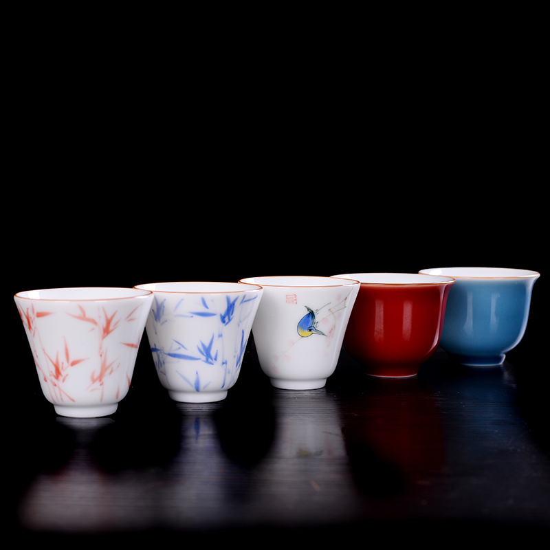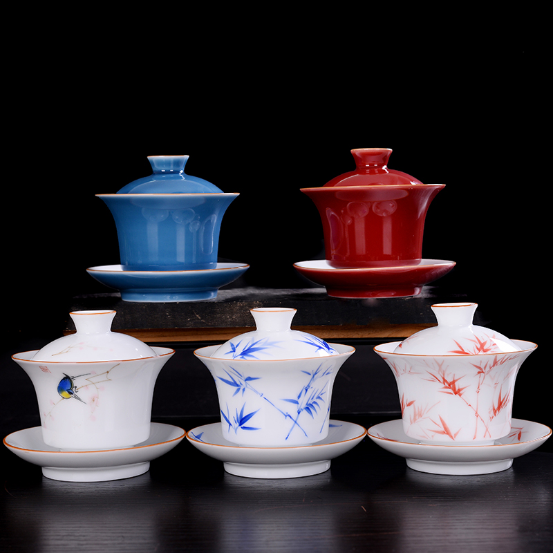 Liangqi red tea cup brightly brightly blue tea cup high white mud red bamboo teacup high white mud blue bamboo cup high white mud cup Magpi Magpie Tea cup Lightly red cover bowl brightly red cover bowl high white mud blue bamboo cover bowl high white mud