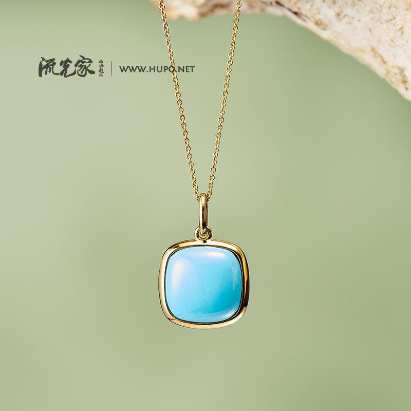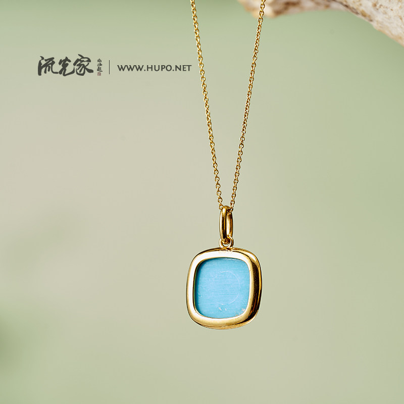 Streamer 18k gold inlaid square pine stone pendant (large number) natural American sleeping beauty pine stone