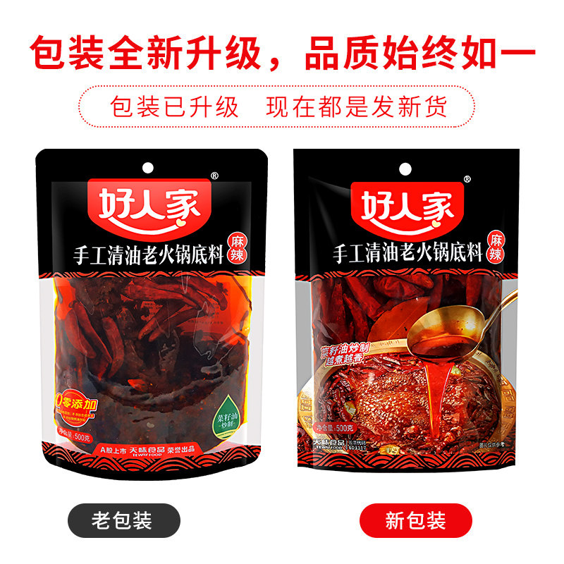 (500g * 10 bags) good people handmade clear oil hot pot soup base Sichuan spicy and clear oil hot pot stock commercial