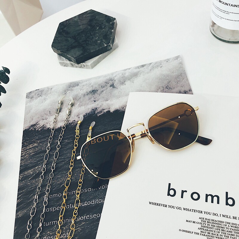 ins hyperfire spectacle retro box polygonal mesh red sunglasses woman with chain street slapping sunglasses Korean version tide