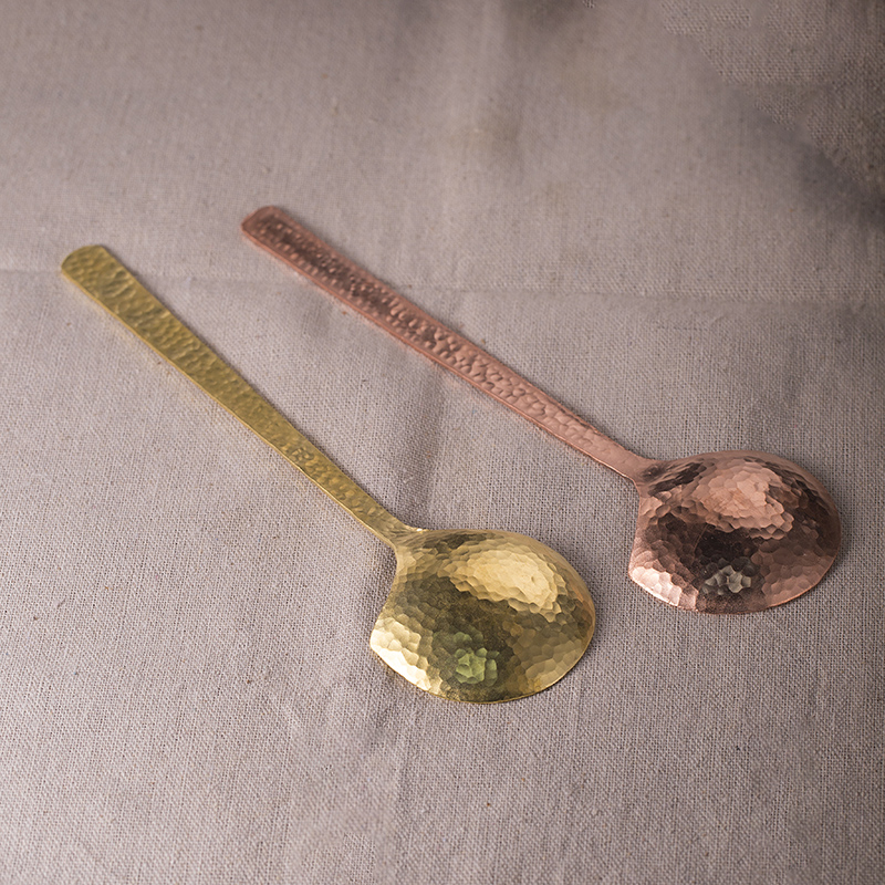 Day-Style Pure Handmade Hammer Grain Red Copper Spoon Home Long Handle Metal Soup Spoon Thickened Creative Pure Cutlery Cutlery Rice Spoon
