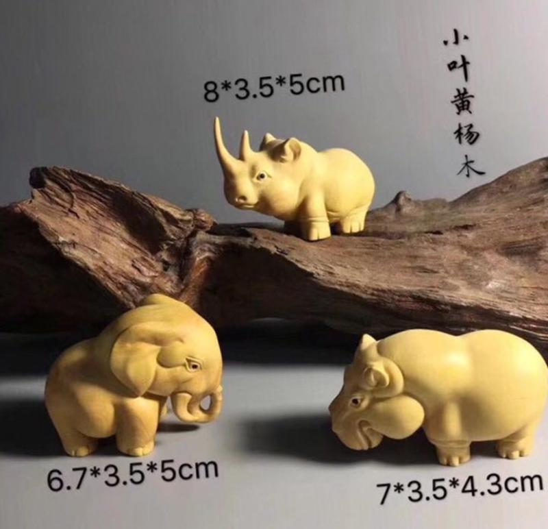 Small leaf boxwood carving handle pieces to play pieces of household animals small ornaments cypress rhinoceros hippo African three treasures