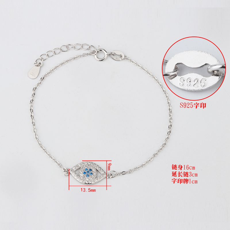 Family Xiang S925 Pure silver Devil's Eye Pure Silver Handmade Woman Han Edition Brief Personality Ornament Student Best Friend Gift