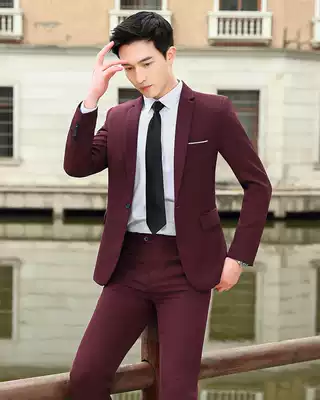 Suit set men's business dress three-piece slim groom suit jacket casual Korean best Man Group dress